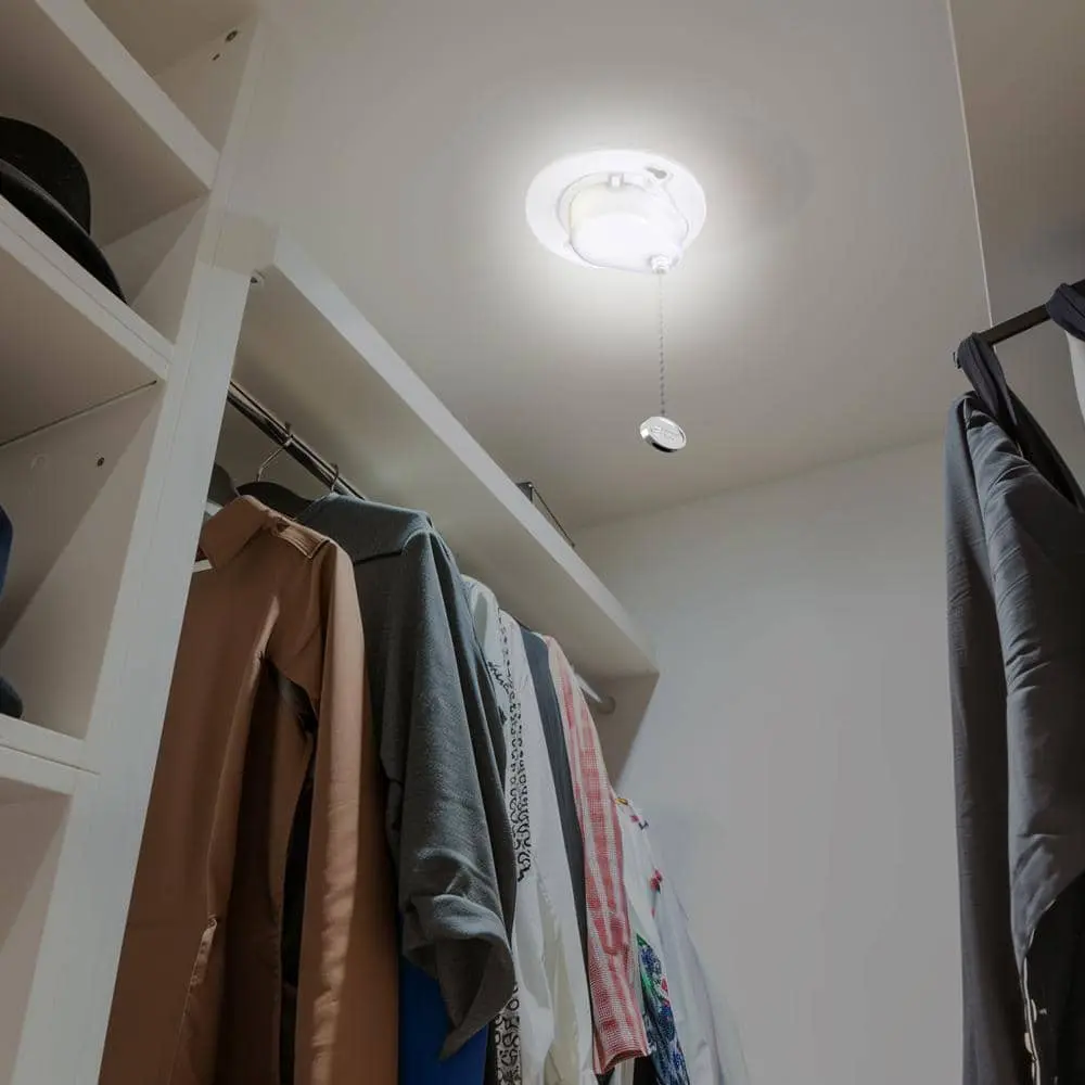 The Commercial Electric 5-inch Universal Round LED Lamp Holder is a compact and efficient lighting solution. It delivers 650 lumens with selectable color temperatures (2700K, 3000K, and 5000K) using just 7.5 watts, replacing traditional 45-watt incandescent bulbs. The lamp is controlled via a convenient 15-inch pull chain and is easy to install with included mounting screws. Perfect for spaces like closets, pantries, and utility rooms, this durable, maintenance-free light is FCC listed, ETL certified, damp-rated, and features a polycarbonate design. Is ideal for both commercial and residential use.