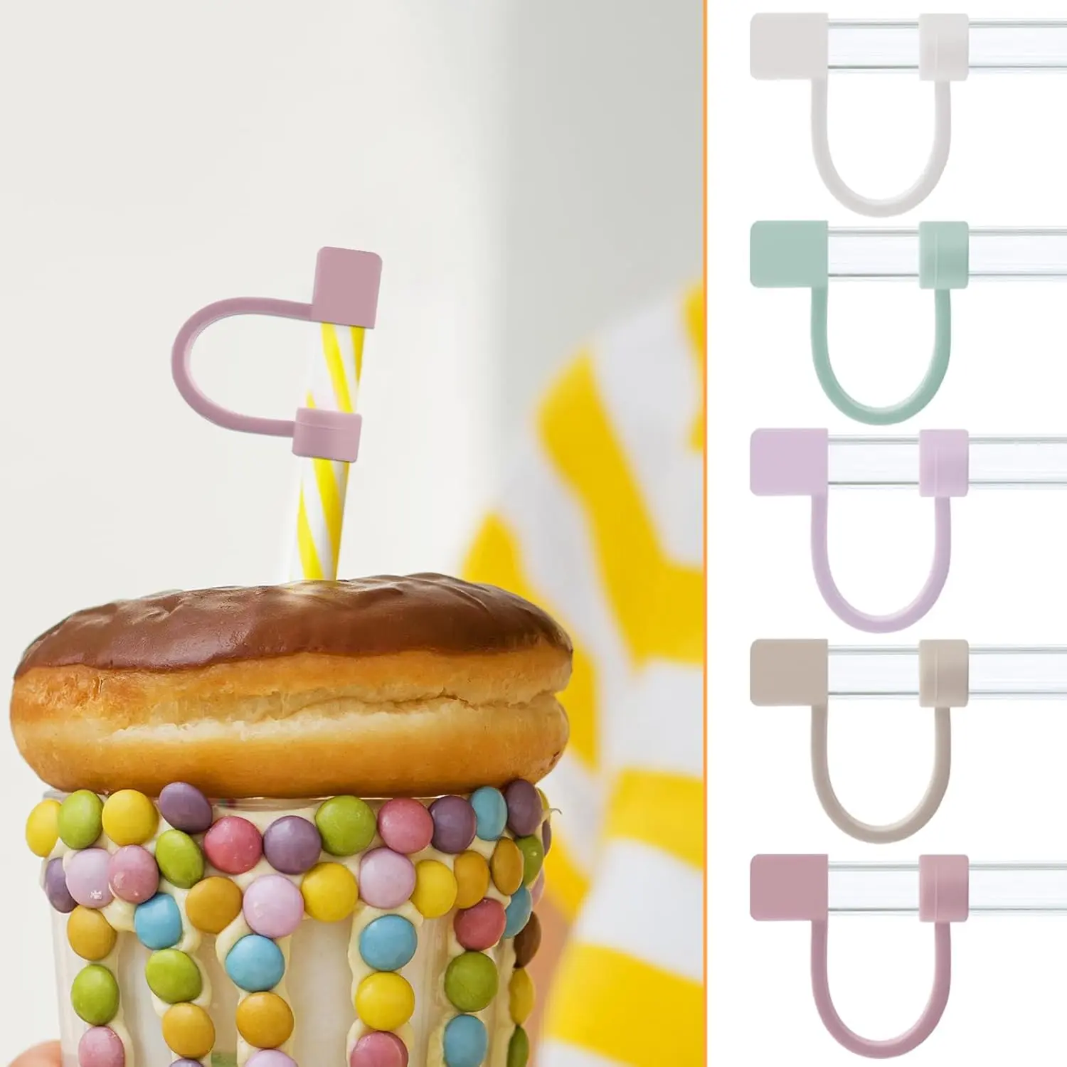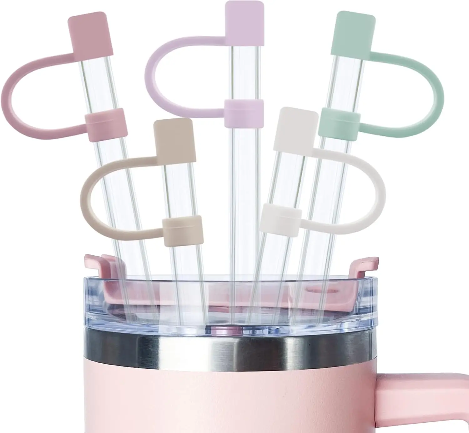 Velaco 5-Pack Silicone Straw Covers, 0.4in/10mm Diameter, Compatible with Stanley 20, 30, and 40 oz Cups. These straw toppers are designed for Stanley 40 oz Tumblers with handles and serve as dust-proof caps for water bottles.