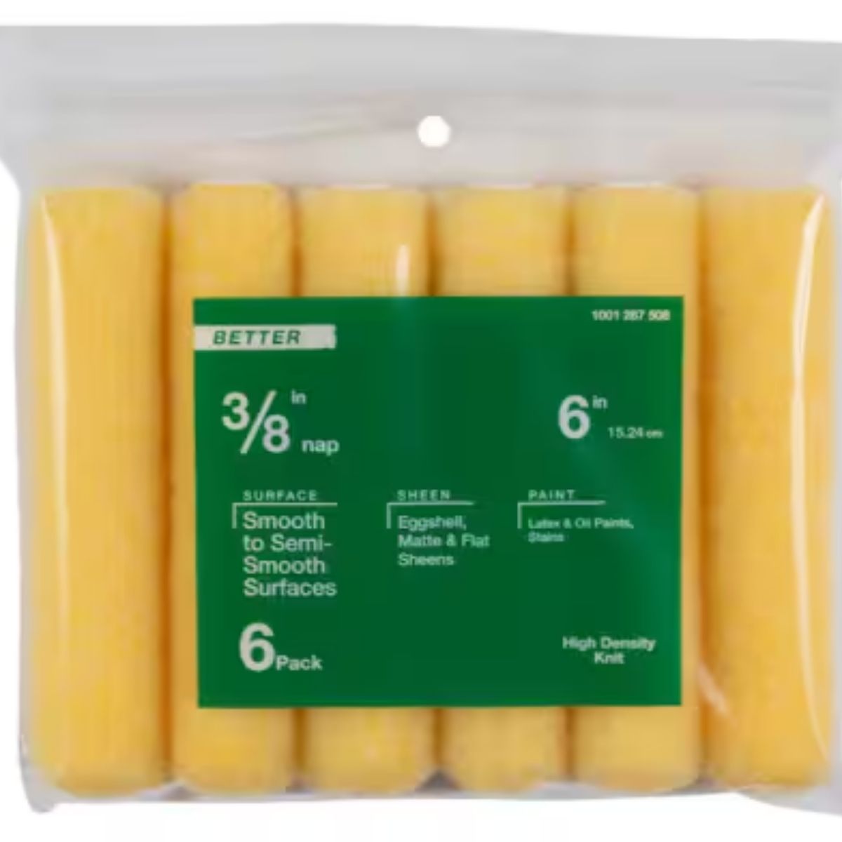 Paint like a professional with this 6-inch x 3/8-inch Medium Density Polyester Roller Cover, designed for optimal performance with all types of paint. The roller cover features a polypropylene core that withstands solvents, ensuring durability and consistent use. Suitable for both interior and exterior applications, it is ideal for DIY painting projects. This pack includes 6 roller covers, offering excellent value. Highlights include compatibility with all paints and stains, a 3/8-inch nap that is ideal for smooth and semi-smooth surfaces, and compatibility with standard 6-inch mini roller frames. The roller covers are durable and easy to clean up for reuse, making them a practical choice for various painting tasks.