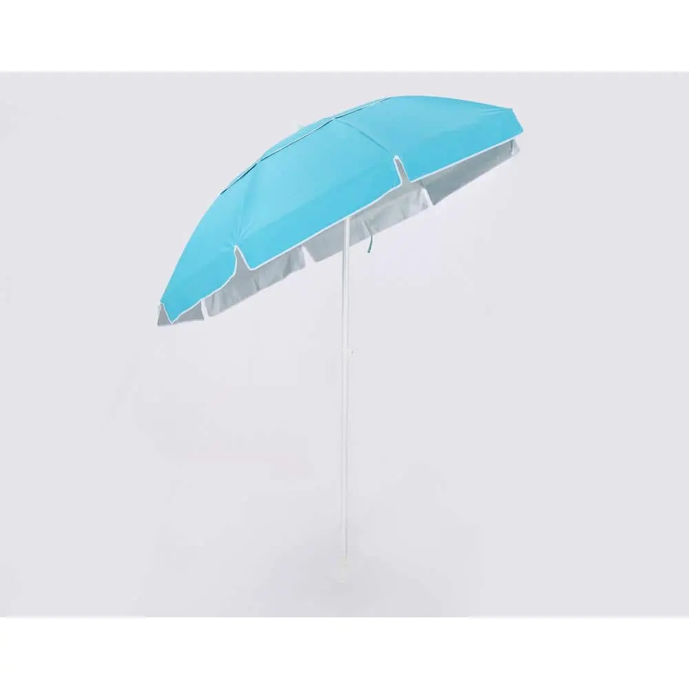 This 7 ft. Beach Umbrella with manual tilt offers a lightweight and portable design, perfect for beach outings. It features a rust-resistant, powder-coated white pole and comes with a matching carrying bag for easy transport. The round canopy is crafted from outdoor-rated polyester fabric, providing UV protection and water resistance for your outdoor enjoyment.
