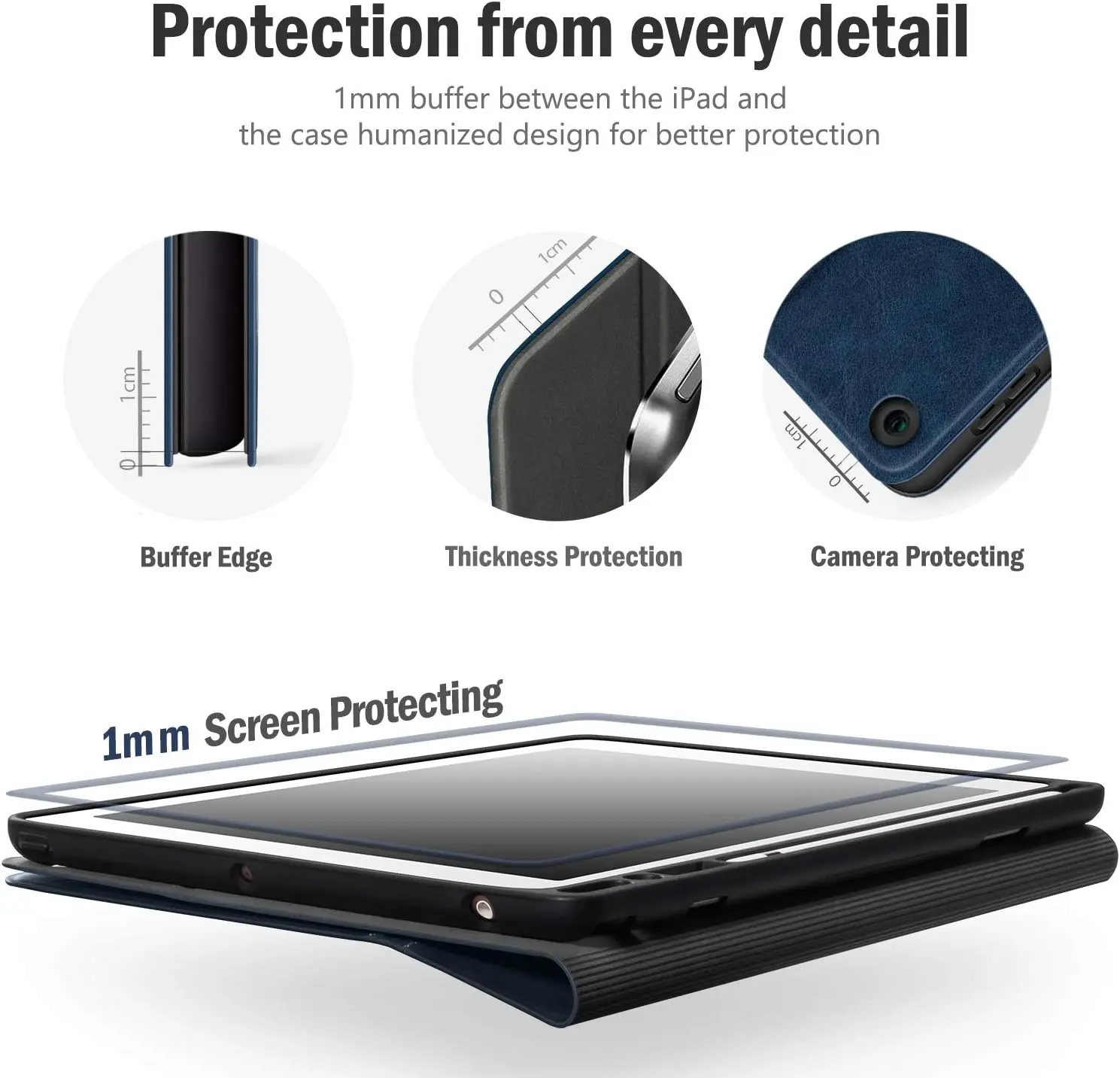 Antbox 10.2 Inch Case for iPad 9th/8th/7th Gen with Pencil Holder Vegan Leather Smart Cover (NavyBlue)