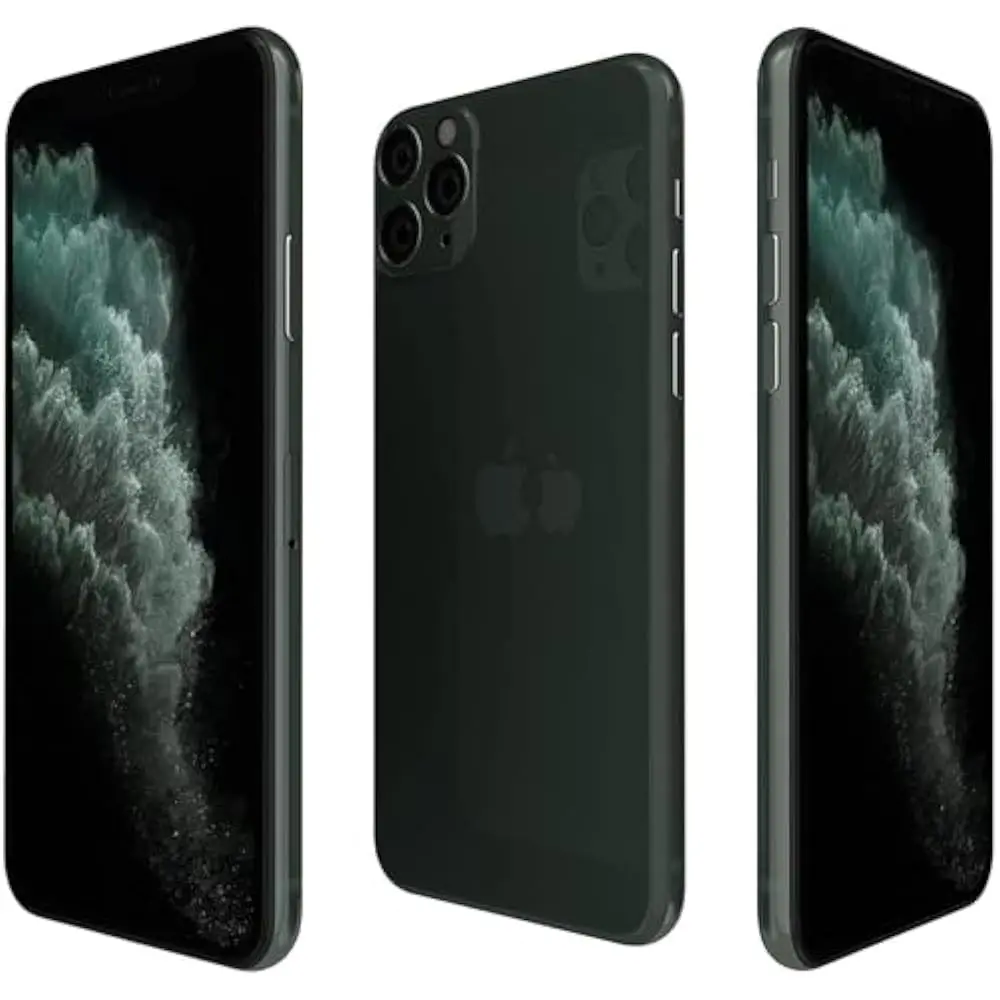 The Apple iPhone 11 Pro in Midnight Green features a sleek smartphone design with a 5.8-inch touchscreen and 256GB storage for ample space. Powered by iOS 16, it provides a smooth and responsive user experience.