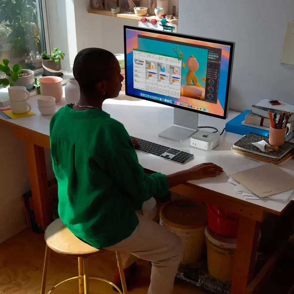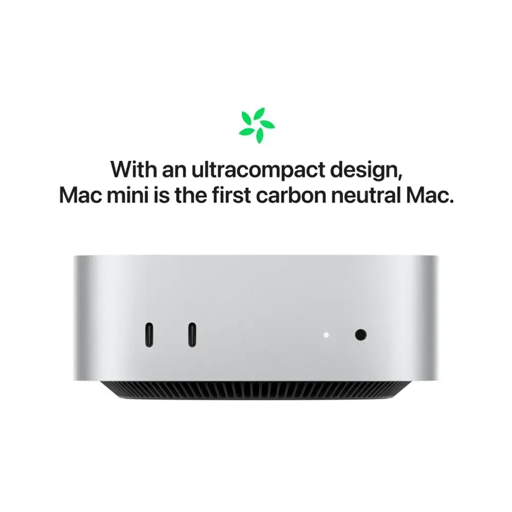 The incredibly powerful Mac mini is packed into a compact 5 by 5-inch frame, designed to fit seamlessly under a monitor and easily placed anywhere. Powered by the M4 chip and built around Apple silicon, it unlocks exceptional speed and performance. Featuring convenient front and back ports, including Thunderbolt, HDMI, Gigabit Ethernet, and USB-C, this mini powerhouse delivers an exceptional experience.