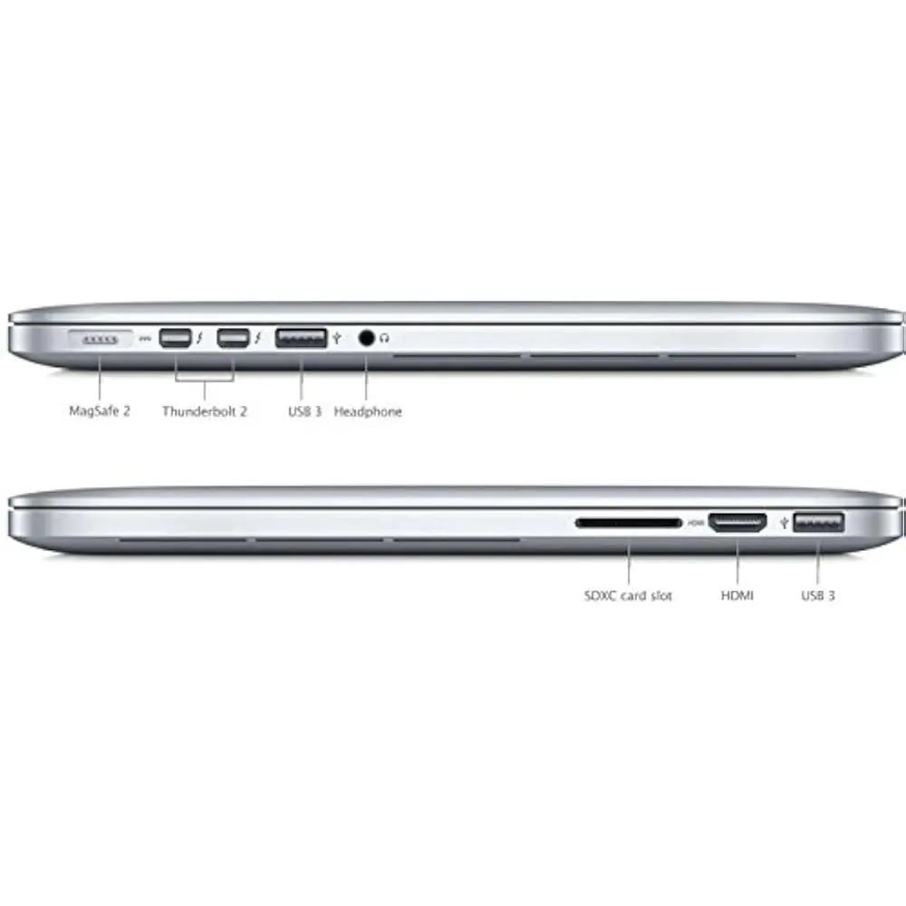 The Mid 2015 Apple MacBook Pro combines performance with high-quality visuals, powered by a 2.5GHz Intel Core i7-4870HQ processor and 16GB of DDR3 RAM for fast and responsive multitasking. Its 512GB SSD provides ample storage and rapid access to files and applications. This model features dual graphics: an AMD Radeon R9 M370X with 2GB of dedicated GDDR5 memory and an Intel Iris Pro for efficient graphics handling, ideal for tasks from video editing to graphic design. The 15.4-inch Retina display with a resolution of 2880 x 1800 offers stunning clarity and color.