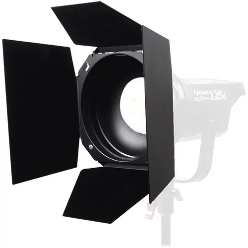 The Aputure Barndoors, Grid, and Gel Holder is an essential accessory for LS 120d II and LS 300d II LED lights, providing precise light shaping with its four-leaf barndoors. The honeycomb grid offers focused beam control, while the gel holder allows for creative color lighting effects. Its durable metal construction ensures reliable performance for professional lighting setups