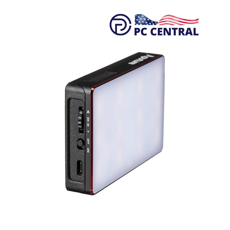 The Aputure MC RGBWW LED Light is a palm-size multifunction light measuring only 3.7 x 2.4 x 0.7". It can be mounted via a 1/4"-20 thread or attached to various metal objects via its built-in magnets. Part of the Aputure M-series of lights, it features RGB LEDs as well as tungsten- and daylight-balanced LEDs. It offers 360° hue control and emits up to 95% of the BT 2020 color gamut. The compact light also packs nine built-in special effects settings. You can control it with its native buttons, control wheels, and a small OLED display in the top corner, or remotely using the companion iOS/Android Aputure Sidus Link app.