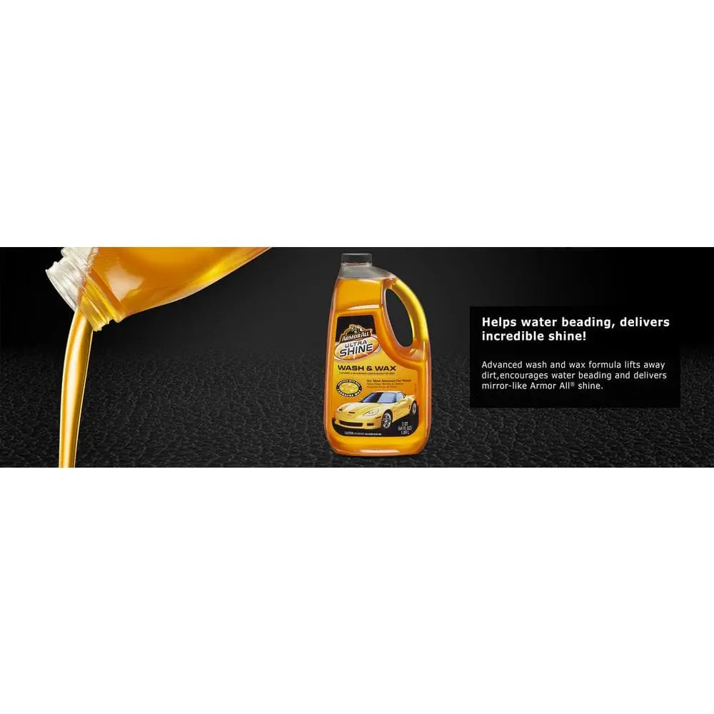 Armor All Ultra Shine Wash and Wax is formulated to gently remove dirt, enhance water beading, and provide a mirror-like shine for your vehicle. Crafted with advanced technology, it combines a unique blend of cleaning agents, surface lubricants, and real carnauba wax to meet the highest standards of auto care. This wash and wax will bring out the deep, vibrant color and shine of your car’s paint. Safe for all vehicle surfaces, it’s an ideal choice for washing everything from motorcycles to classic cars to daily drivers.