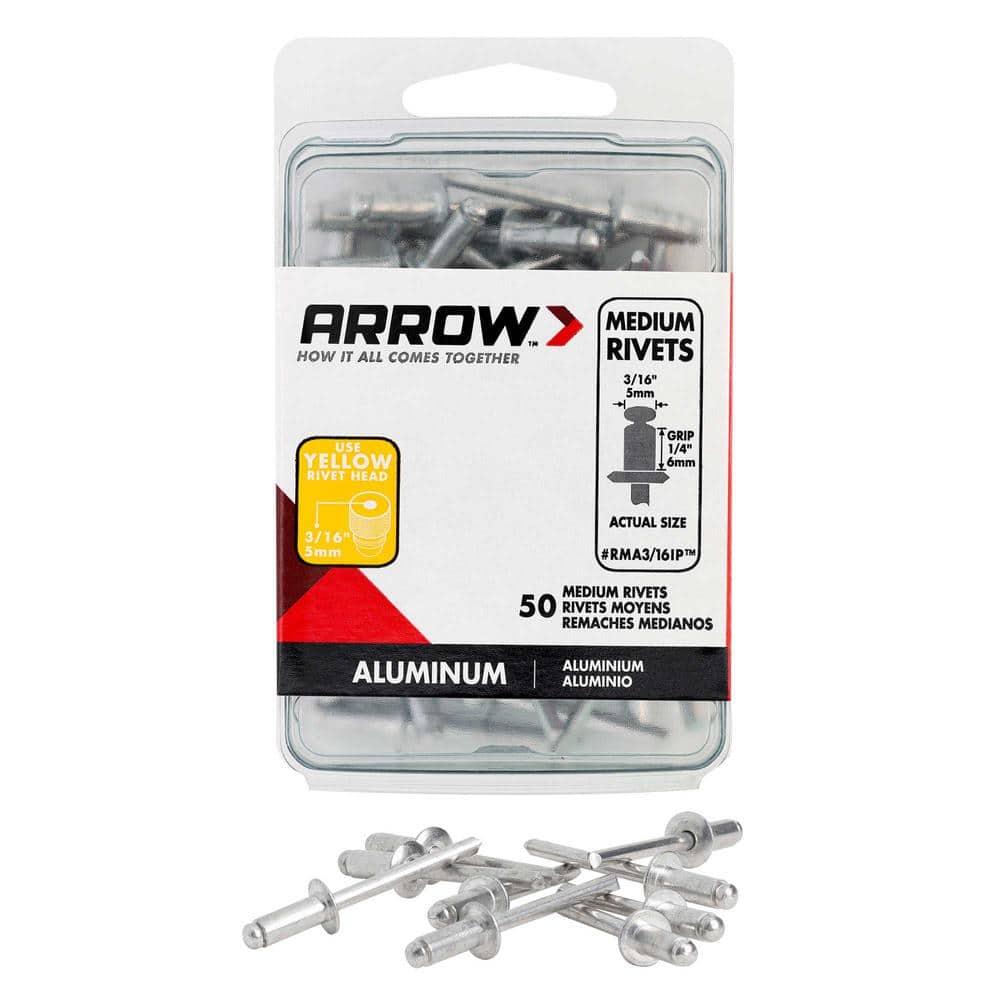 Heres a revised version: Versatile for Both Indoor and Outdoor Use Crafted from lightweight, durable aluminum Compatible with all Arrow rivet tools Ideal for general-purpose tasks, including gutters, lawn furniture, heat ducts, metal cabinets, and toys Features a 1/4 in. grip range