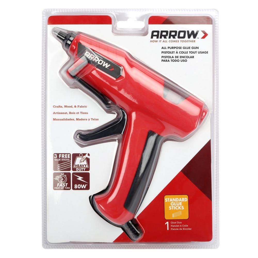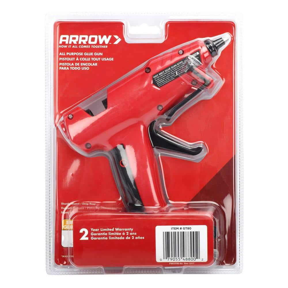 The Arrow GT80 glue gun is a robust, durable tool suitable for both DIY and professional applications. With 80 watts of power, it quickly heats up and maintains a high temperature for efficient glue dispensing. Additionally, its ergonomic design ensures easy handling and usability.