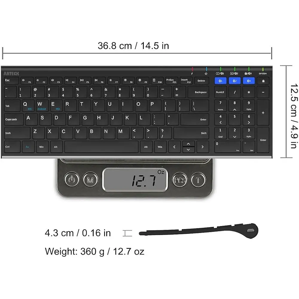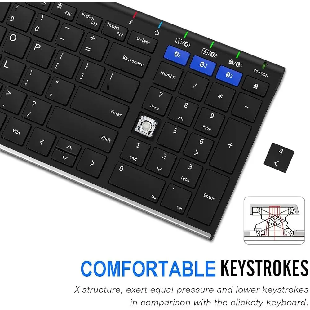 This full-size Bluetooth keyboard is ideal for those who need a versatile, multi-device solution with a long-lasting battery and ergonomic design.