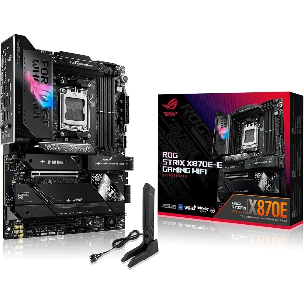 The ASUS ROG Strix X870E-E Gaming WiFi is a cutting-edge motherboard designed to unleash the full potential of AMD Ryzen 7000 Series processors. With its advanced features and innovative design, it's the perfect foundation for your high-performance gaming rig.