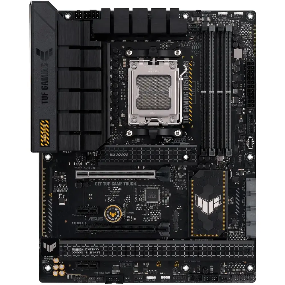 The ASUS TUF GAMING B650-PLUS WIFI is a high-performance ATX motherboard built for durability and next-generation computing. Designed for AMD Ryzen 9000 and 7000 Series processors, it features Socket AM5 compatibility, ensuring seamless upgrades. With DDR5 memory support, it delivers ultra-fast speeds and improved multitasking capabilities. Storage is enhanced with a PCIe 5.0 M.2 slot, providing blazing-fast data transfer rates of up to 128 Gbps. Engineered for stability, it includes a 12+2 power stage design and comprehensive cooling solutions with enlarged VRM heatsinks to maintain peak performance. Connectivity is future-ready with Wi-Fi 6 integration and Realtek 2.5Gb Ethernet, ensuring low-latency gaming and fast network speeds. The board also boasts a USB 3.2 Gen 2x2 Type-C port, enabling 20 Gbps data transfer, and enhanced audio features for an immersive gaming experience. Built with military-grade components, this motherboard delivers exceptional reliability, making it an ideal choice for gamers and PC enthusiasts