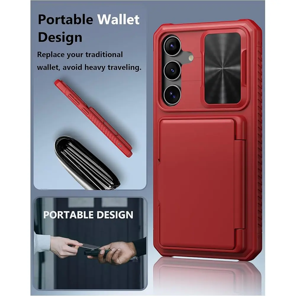ATATOO for Samsung Galaxy S24+ Plus Case with Card Holder 6.7"​ , Red