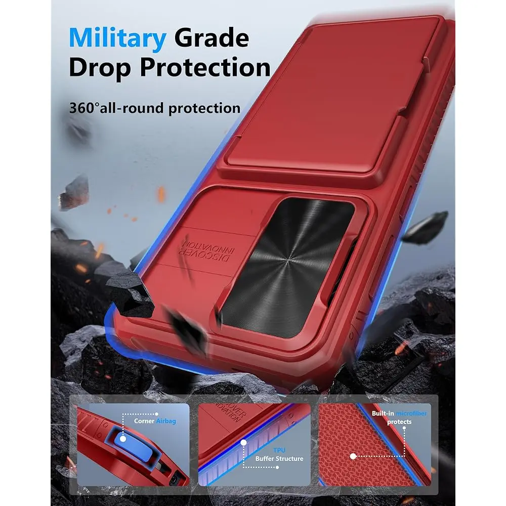 The innovative sliding camera cover provides robust lens protection, shielding it from scratches, dust, and oil while maintaining privacy. Crafted with rugged silicone and military-grade materials, the case features reinforced corners, raised edges, and a shock-absorbing design to safeguard your phone against drops, impacts, and daily wear.