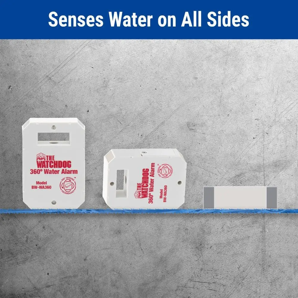 The Basement Watchdog 360 Water Alarm features a patented design that allows it to detect water from any side, making it versatile for placement in areas prone to leaks. Its slim profile fits easily between appliances like your washer and dryer, under sinks, behind refrigerators, and even in air conditioner drip pans or near sump pits. The alarm sounds a piercing 110 dB when it detects as little as 1/32 inch of water, alerting you before flooding or mold growth occurs. With this early-warning system, you can prevent costly damage and repairs caused by unnoticed leaks.