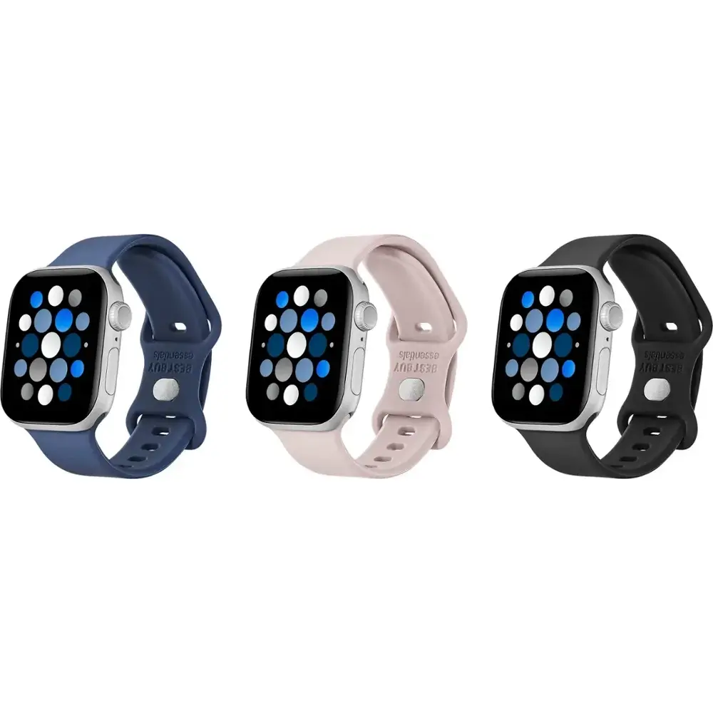 The Best Buy essentials™ Silicone Band offers a versatile and stylish solution for your Apple Watch®, compatible with 38mm, 40mm, 41mm, and 42mm models, including Series 10. This 3-pack provides variety with bands in Navy Blue, Pink, and Black, catering to different styles and occasions. Made from high-quality silicone, these bands deliver superior comfort, flexibility, and durability. They feature an adjustable fit, ensuring a secure and comfortable experience. Designed for convenience, the bands offer easy installation, making it simple to attach or remove them from your Apple Watch