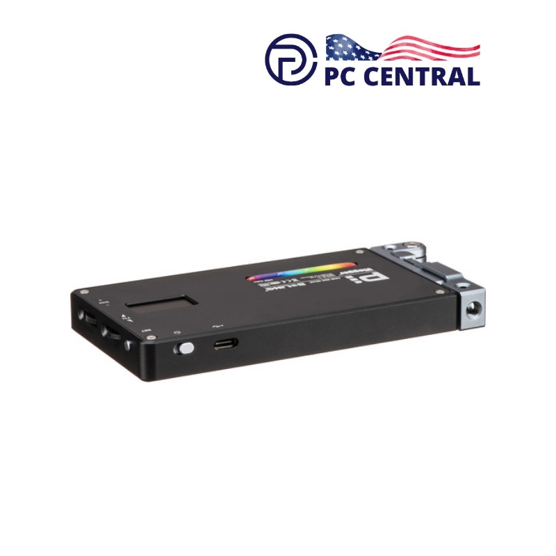 The Pocket LED RGB Video Light's integrated battery charges to full power in 140 minutes and incorporates a safety feature to prevent overheating. You'll find an LCD display on the rear of the light with two control dials and one button on the side. This aluminum fixture has a built-in on/off switch and includes a charging cable, a 1/4-20" shoe mount, an Allen wrench, and a carrying pouch.