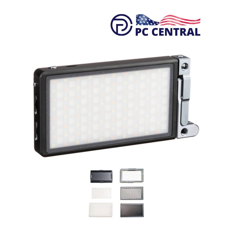 The compact LED light features an adjustable color temperature range of 2500 to 8500K, 360 selectable RGB colors, nine special effects modes, and an integrated battery that lasts up to 140 minutes on full power. The included magnetic frame mounts onto the light and allows you to change the light modifiers quickly using magnets. The kit also includes a shoe adapter, charging cable, and carry pouch. Read more below about the items in this kit.