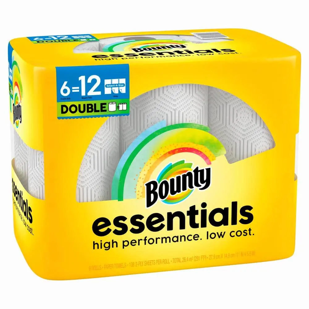Tired of low-quality products that don't last? That's why we created Bounty Essentials, combining performance and affordability. This pack includes Bounty Essentials Select-A-Size white paper towels, designed to be strong enough for tough messes yet gentle enough for your family. With Select-A-Size sheets, you can control how much you use based on the size of the mess.