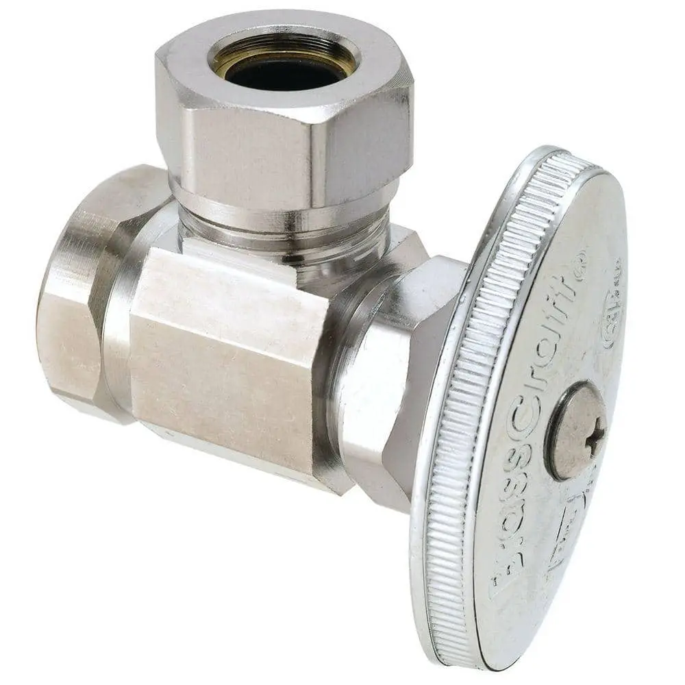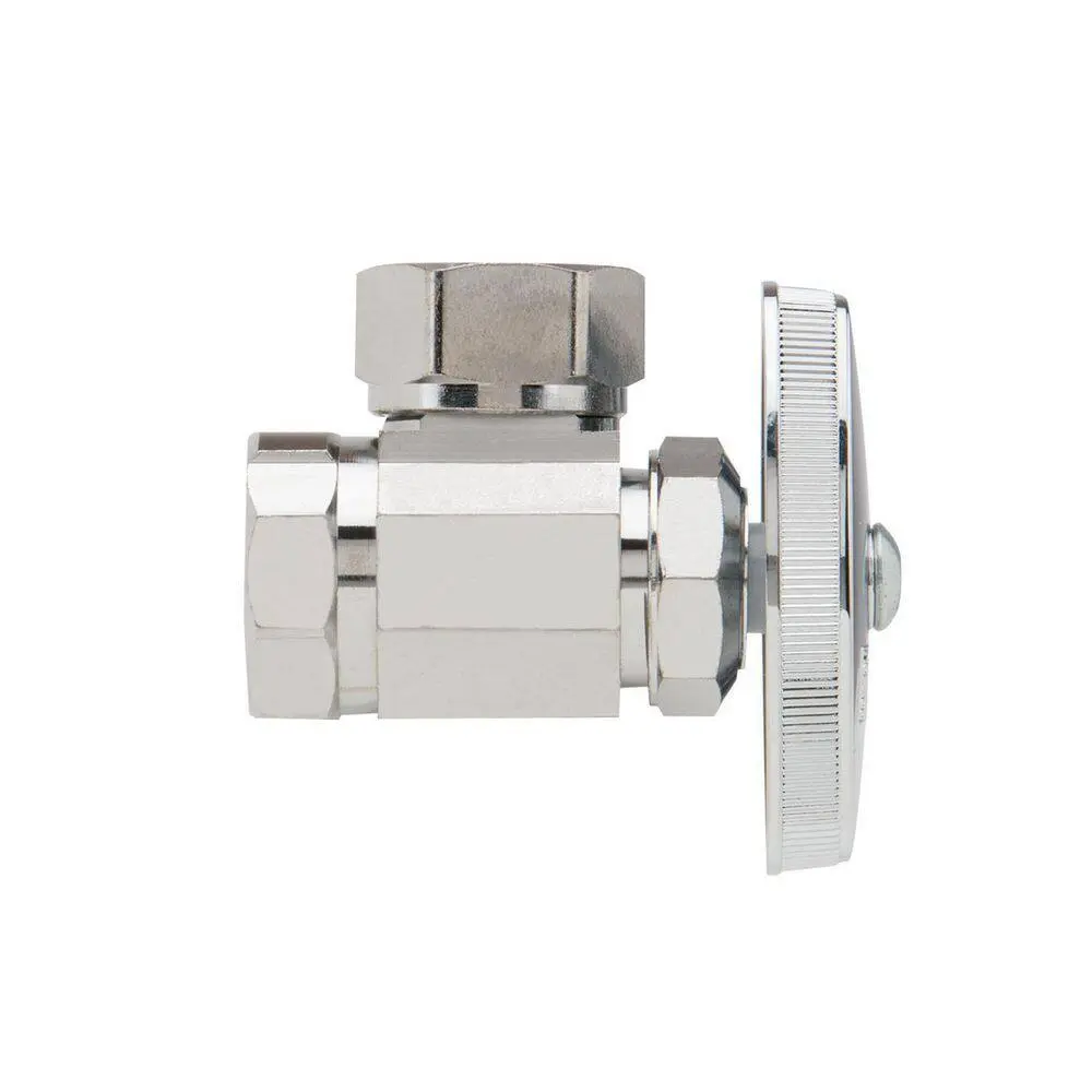 The BrassCraft 1/2 in. FIP Inlet x 7/16 in. & 1/2 in. Slip-Joint Outlet Multi-Turn Angle Valve is designed to control water flow to household plumbing fixtures such as faucets, toilets, dishwashers, ice makers, and washing machines. Commonly used where the water pipe enters from the floor, this valve allows you to stop the flow of water with just a few turns of the handle, enabling maintenance and repairs without turning off the entire water supply.
