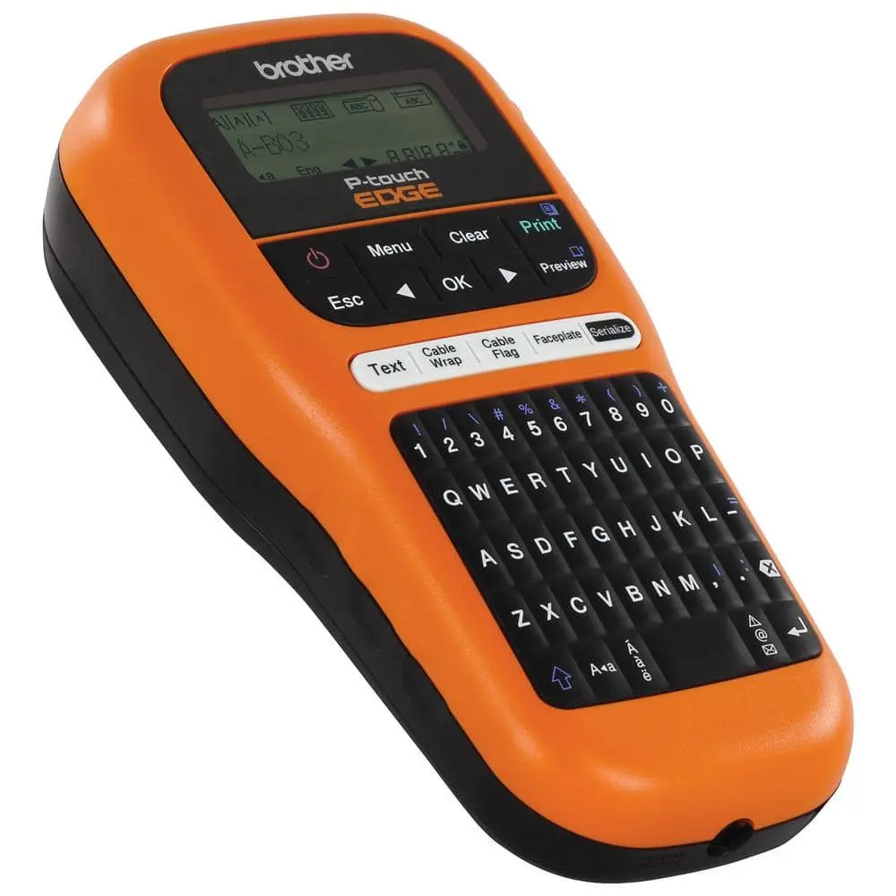 The P-touch PT-E105 is a lightweight and portable label maker designed for both professional and DIY applications. It allows you to print high-quality, durable laminated labels for items like patch panels, power cables, outlet covers, and more. It features a large display screen and a QWERTY keyboard for easy typing, and you can preview your labels on the graphical LCD screen before printing to minimize errors. The PT-E105 comes with a comprehensive library of industrial symbols and can print text and symbols up to 24-point size on 12 mm W labels. It automatically adjusts the font size and layout settings for optimal label formatting when using Brother P-touch TZe tapes. Printing speed is up to 20 mm per second. A built-in real-time clock allows you to automatically add date and time stamps, making it perfect for field-service applications. Its serialization capability is ideal for labeling power cables, patch panels, and faceplates. The PT-E105 is rugged, versatile, and portable, making it easy to bring to the job site or keep in your truck. It includes a 26.2 ft. roll of black-on-white Flexible ID tape for general-purpose industrial labeling.