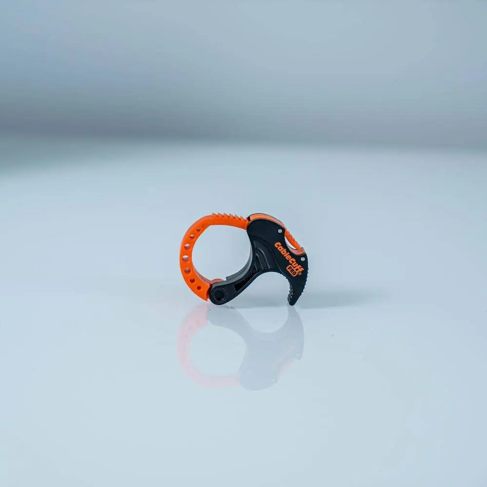 The Cable Cuff PRO is the ultimate reusable cable management tool, designed for efficiency, durability, and convenience. It features a unique push-button release, flexible polycarbonate construction, and patented hinge operation with self-aligning teethed jaws for multiple open positions. The flat-laying design ensures easy handling and storage, while its 360-degree footprint and ergonomic details provide comfort and functionality. Reusable and eco-friendly, the Cable Cuff PRO replaces disposable cable management devices, offering a sustainable solution for organizing cables, cords, and bundles up to 1 inch. Perfect for electronics, power tools, and appliances.