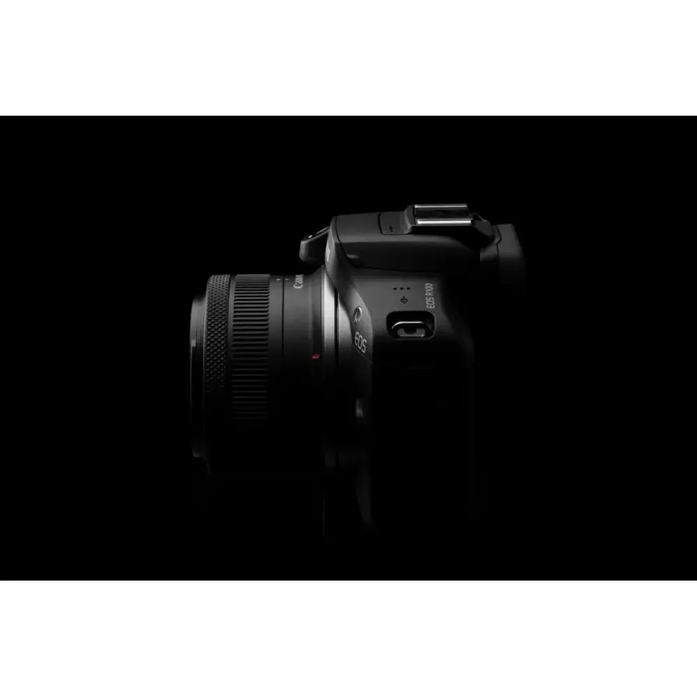 Experience the fun of content creation with the smallest and lightest EOS R series camera¹, the Canon EOS R100. Equipped with a 24.1 Megapixel APS-C CMOS sensor and DIGIC 8 processor, this camera excels at capturing stunning still images. The Dual Pixel CMOS AF system allows for fast, precise focus, including eye detection for human subjects. The EOS R100 also records Full HD video at up to 60 fps, and 4K video at 24 fps from the sensor's central area for exceptional video quality. Its RF-S18-45mm F4.5-6.3 IS STM lens is compact, offering flexibility while keeping your camera bag light.