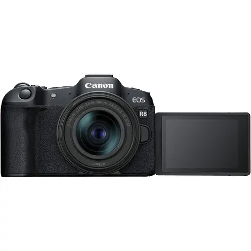 The EOS R8 combines high-performance full-frame capabilities with a lightweight and compact design. With a 24.2 megapixel full-frame CMOS sensor, full use of EOS R-series interchangeable lenses, and highly advanced functionality and performance, the EOS R8 can deliver high-quality stills and movies. The new RF24?50mm F4.5-6.3 IS STM standard zoom lens is a super-compact, wide-to-standard focal length zoom lens perfect for anyone looking for strong wide-angle still imagery and video combined with easy handling and portability.