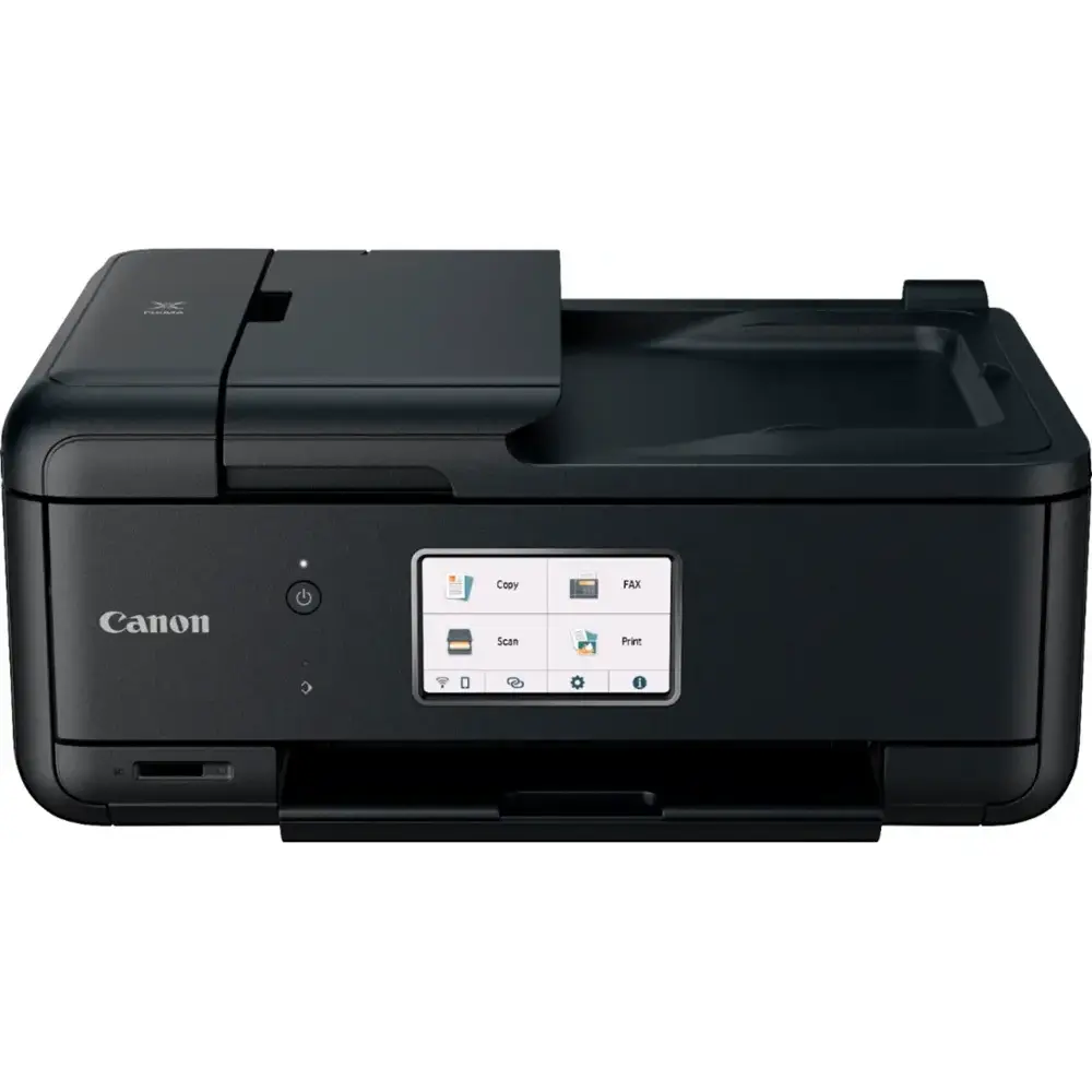 The Canon PIXMA TR8620a Wireless All-In-One Inkjet Printer offers versatile all-in-one functionality with print, scan, copy, and fax capabilities. Designed with wireless connectivity, it allows for easy printing from mobile devices. Its compact design and sleek black finish make it perfect for any home or office setup. The printer features an automatic document feeder for efficient multi-page scanning and copying, and supports borderless printing for stunning photo quality. Powered by a 5-color individual ink system, it ensures vibrant, detailed prints. Additionally, it supports voice-activated printing through Alexa and Google Assistant, with a user-friendly touchscreen for smooth operation.