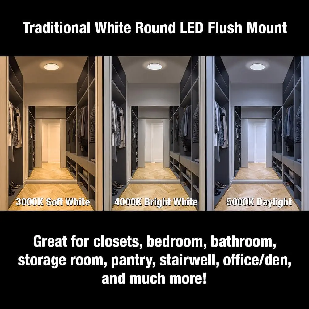 The Commercial Electric 12-inch White Round LED Flush Mount Ceiling Light is a stylish and energy-efficient alternative to traditional incandescent lighting. Its low-profile design makes it perfect for spaces with low ceilings, blending seamlessly with any ceiling aesthetic. You can easily adjust the color temperature to Soft White, Bright White, or Daylight to suit your preferences, and the light is dimmable for added flexibility. With 1100 Lumens of brightness and a smooth frosted lens, it provides even, clear light with no discoloration or dark spots over time. This maintenance-free fixture features an integrated LED light engine, eliminating the need for bulb replacements. Ideal for use in kitchens, bathrooms, offices, hallways, and more, it offers reliable lighting for various settings.