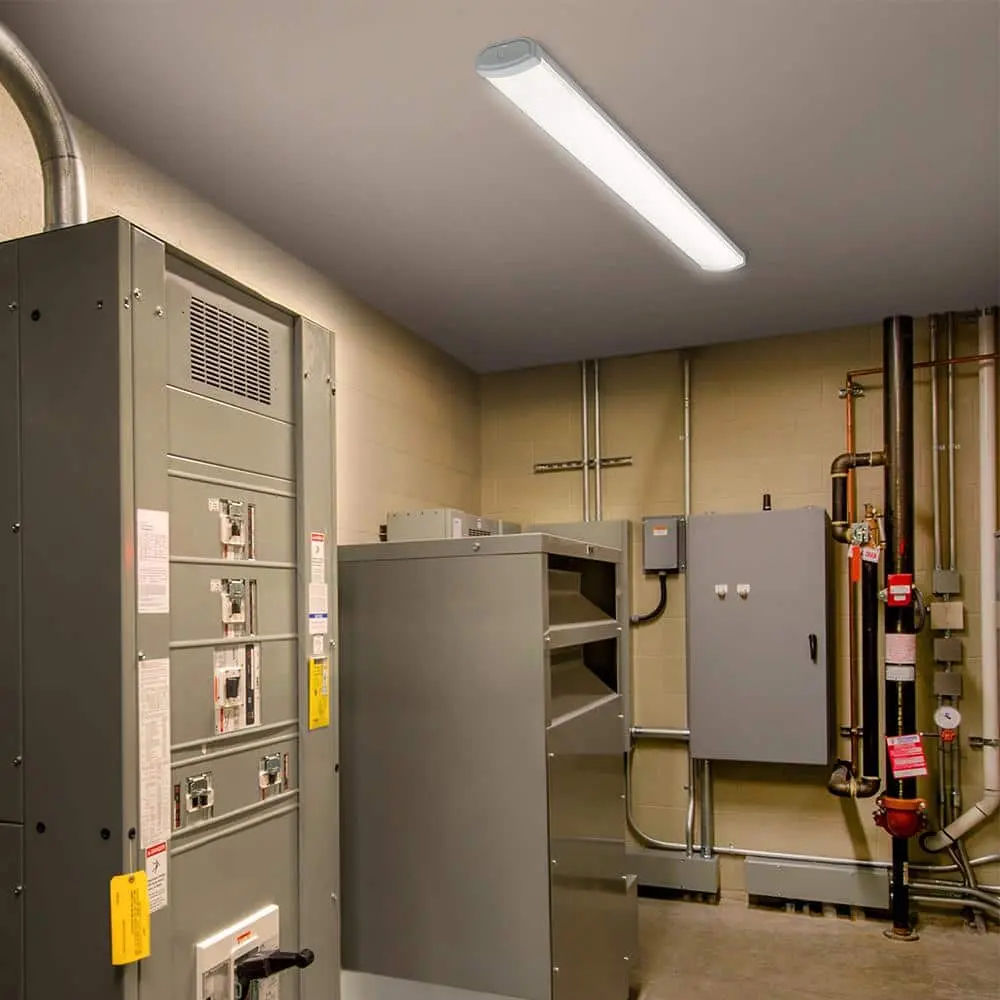 Illuminate your workshop or storage space with the Commercial Electric 4 ft. LED Wraparound Ceiling Light. This energy-efficient fixture reduces power consumption by up to 79%, delivering 3,600 lumens while using only 40 watts. Designed for durability, it features impact-resistant construction and provides even, crystal-clear lighting without discoloration or dark spots over time. With a maintenance-free design and long lifespan, this LED wrap light is ideal for laundry rooms, workbenches, closets, stairways, hallways, basements, utility rooms, retail spaces, offices, and more.