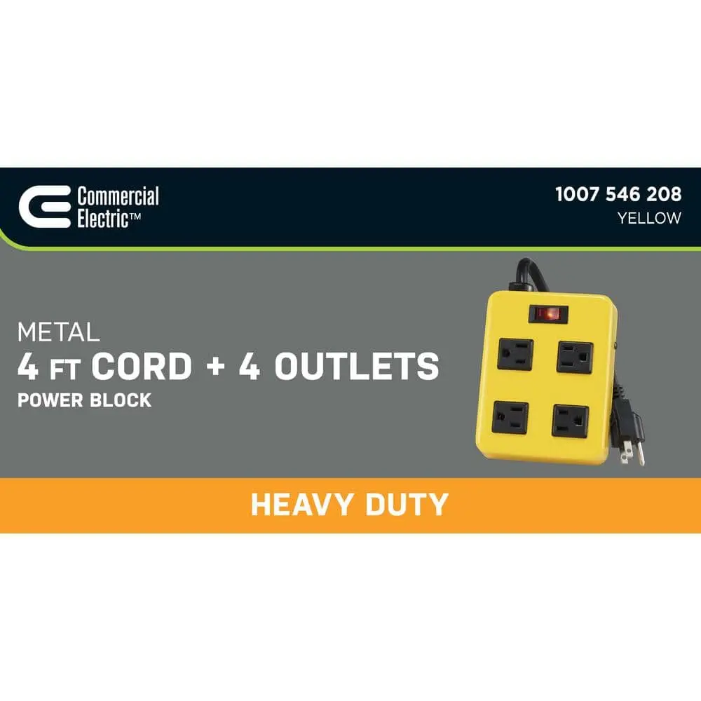 The 4-Outlet Metal Power Block features a 4 ft. cord and a durable, heavy-duty steel housing. Designed to convert a single outlet into four, it is ideal for use at home, in the office, or in the workplace. The mountable design offers both convenience and safety wherever you need it.
