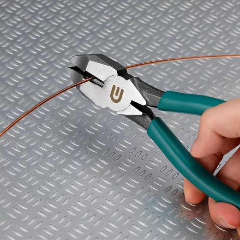 The Commercial Electric 7 in. Wire Cutting Pliers feature sharp, hardened steel cutting edges and ergonomic handles for comfortable use. Ideal for cutting and gripping various wire types, they are durable and suitable for both professional and DIY tasks. Dimensions Handle Length (in.):4.72 in Product Depth (in.):0.59 in Product Height (in.):9.84 in Product Width (in.):3.15 in Details Electrical Tools Features:No Additional Features Features:No Additional Features Hand Tool Type:Linesman Pliers Jaw Capacity (in.):0.31 in Jaw Tip Size (in.):1.26 in Joint Type:Fixed Joint Plier Type:Electrician Tools Product Type:Hand Tool