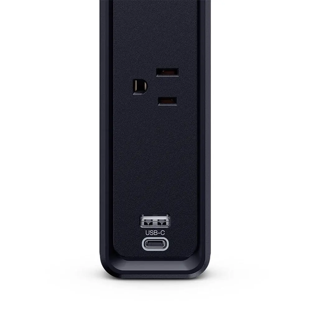 The Surge Protector expands a standard 2-plug grounded wall outlet into 7 surge-protected outlets. It’s designed to accommodate the increasing number of phone chargers and electronics that often crowd typical outlets. This model features 2 USB-A (2.4 Amp) and 1 USB-C (15-Watt non-PD, 18-Watt total) ports, allowing you to charge phones and other devices without using up the primary outlets. The wide-spaced outlet provides room for AC power blocks. With 2100 joules of protection, it’s ideal for safeguarding personal computers, routers, modems, tablet chargers, and other rechargeable electronics.