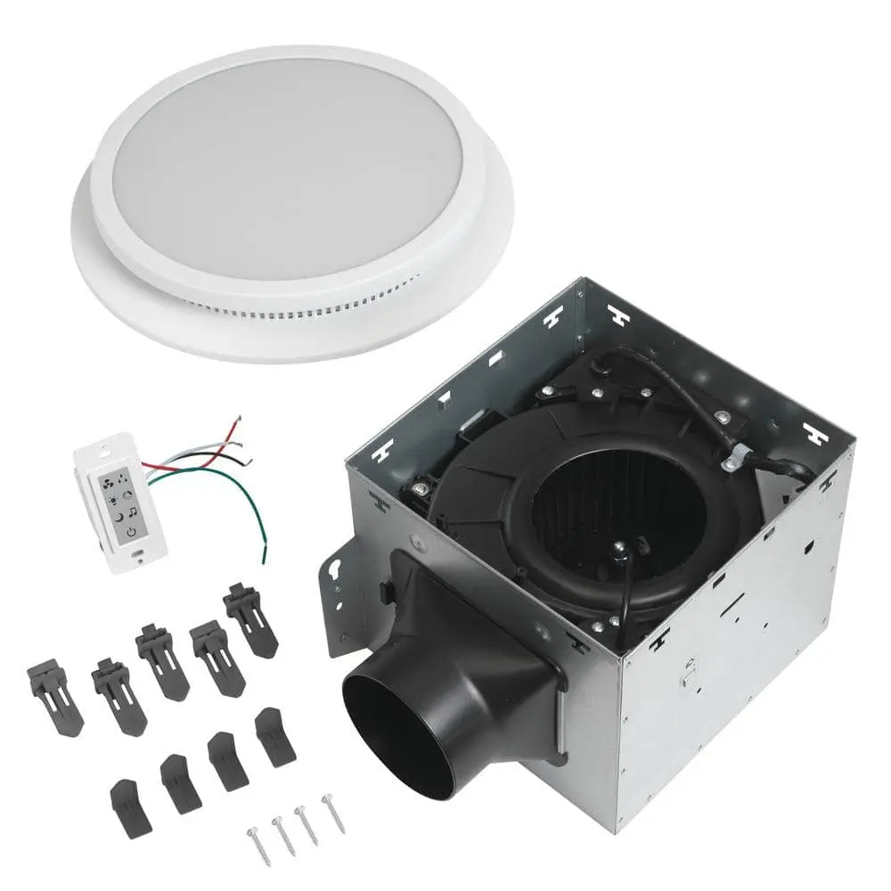 Elevate Your Space with the Commercial Electric Exhaust Fan! Featuring dual Bluetooth speakers for streaming music while you get ready. The built-in humidity sensor activates the fan at 60% humidity, ensuring a healthy environment.Enjoy customizable lighting with five adjustable color temperatures (2700K to 5000K) and a gentle LED night light for late-night use. With 110 CFM airflow, its perfect for bathrooms, laundry rooms, and more, effectively removing moisture from spaces up to 110 sq. ft.Installation is quick and easy with the Clip Lock mounting system. Choose the Commercial Electric humidity-sensing LED Bluetooth bath fan for modern efficiency and convenience!