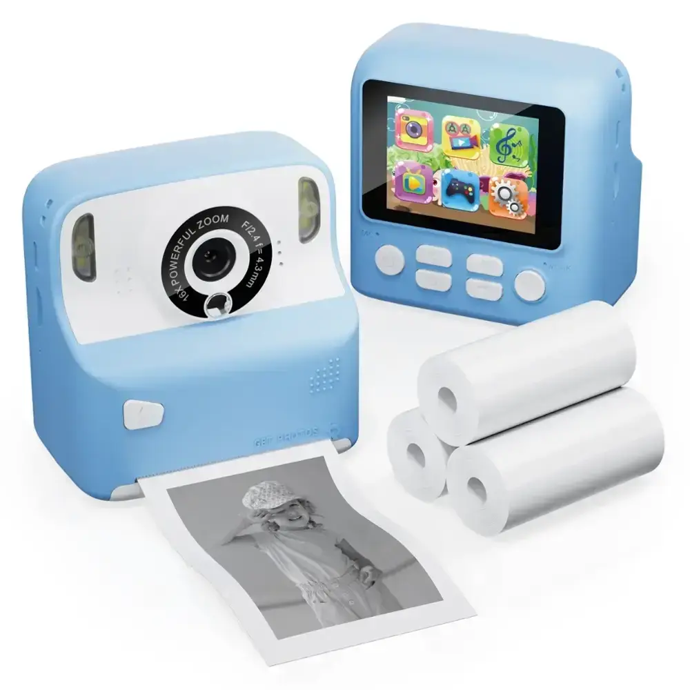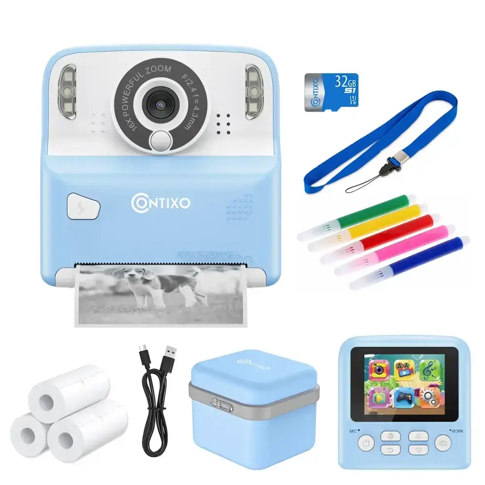 The Contixo KC2 Instant Film Camera is the perfect birthday gift for kids, providing a fun and engaging way to capture precious moments. This 12MP camera, designed for children as young as three, goes beyond being just a toy—it's a creative tool for learning and exploration. With features like 16x digital zoom, 1080P video quality, and instant photo printing, kids can take high-quality pictures with ease. The camera includes 3 rolls of printing paper, ensuring hours of entertainment, and even has an MP3 player for listening to favorite tunes while capturing memories. The 2.4-inch high-definition IPS screen, dual front and rear cameras, auto-focus, puzzle games, fill light, and timed shooting features offer a full range of functions for young photographers. It charges efficiently with a DC-5/1A voltage and supports up to a 32GB microSD card. Available in blue and pink, the KC2 bundle also includes a lanyard, charging cable, and user manual, making it the ultimate package for budding photographers.