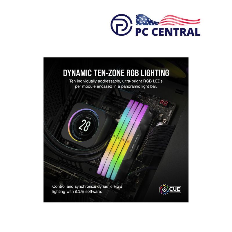 Unleash the full potential of your system with the Corsair 32GB Vengeance RGB DDR5 6000 MT/s memory kit. This high-performance RAM delivers blazing-fast speeds, vibrant RGB lighting, and efficient cooling, all in a sleek black design.
