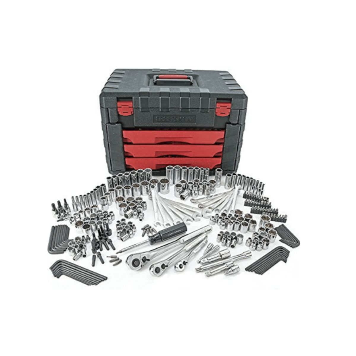Includes 146 sockets in 1/4″, 3/8″ and 1/2″; 3 quick release 36T ratchets in 1/4″, 3/8″ and 1/2″; 12 combination wrenches and 109 other specialty toolsMetric, inch, standard and deep well sockets fit three ratchetsIdeal flexibility with multiple sizes to work in both small, tight spaces and large areasAlloyed steel construction for guaranteed durabilityIncludes a general lifetime warranty
