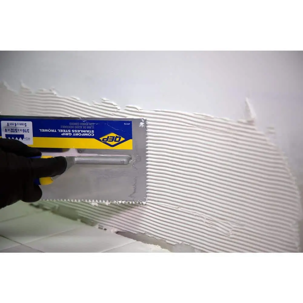 The Custom Building Products OmniGrip 1 Gal. (4 qt.) Premium Lightweight Adhesive for Tile and Stone offers a premium lightweight formula, making it easy to spread and handle for a more efficient installation process. It provides strong bonding, ensuring excellent adhesion for tile and stone surfaces. With 1 Gal. coverage, it is ideal for medium to large projects. This adhesive is moisture resistant, making it perfect for use in wet areas, and features easy cleanup, allowing you to wash off tools easily with water