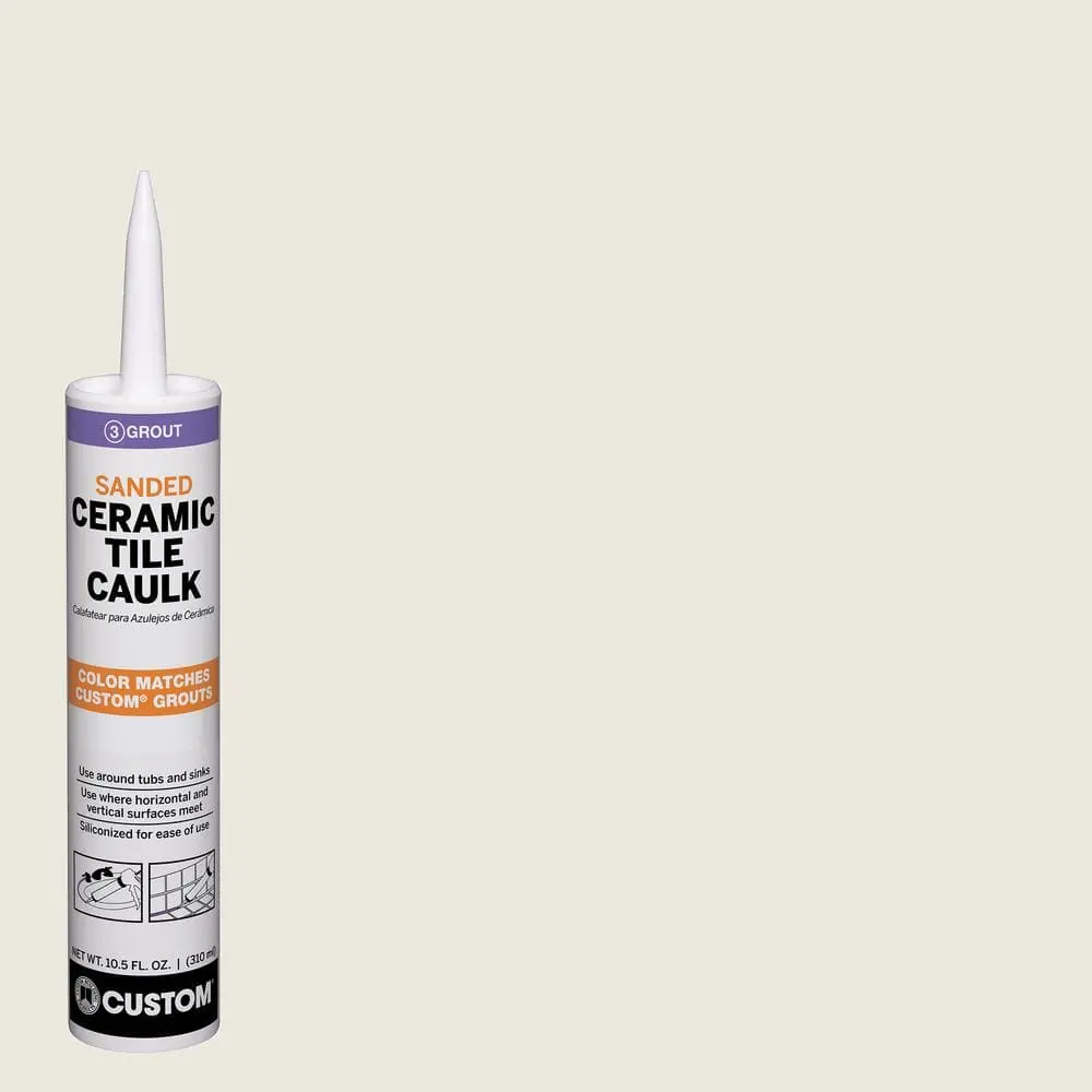 The Custom Building Products Polyblend #381 Bright White 10.5 oz. Sanded Ceramic Tile Caulk is a reliable solution for sealing tile joints, corners, and edges with a smooth, professional finish. Designed for water-resistant applications, it is ideal for use in kitchens, bathrooms, and other wet areas. This flexible and durable formula helps prevent cracking and shrinking, ensuring long-lasting performance. It is also paintable, allowing seamless blending with surrounding surfaces. With its easy application and cleanup, this caulk provides both convenience and quality for your tiling projects.