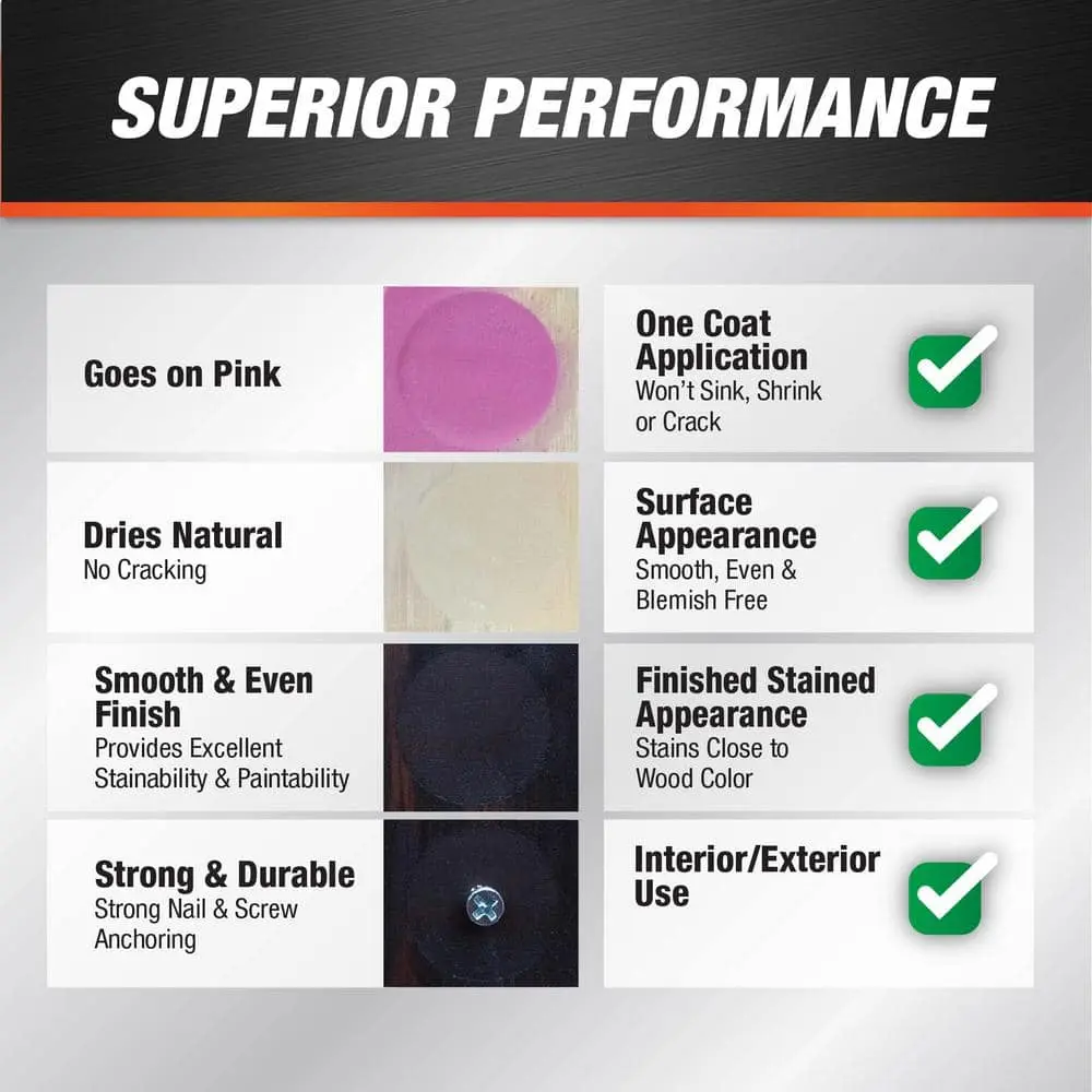 The DAP Plastic Wood-X with DryDex 8 oz. All-Purpose Wood Filler offers a fast-drying solution for wood repairs, making your projects more efficient. Its color change indicator lets you know when the filler is fully dry, transitioning from pink to white. This wood filler is sandable and paintable, allowing for a smooth finish that can be customized to match your project. Shrink-resistant for long-lasting results, it is perfect for a variety of surfaces, including wood, drywall, and more, making it a versatile addition to your repair toolkit