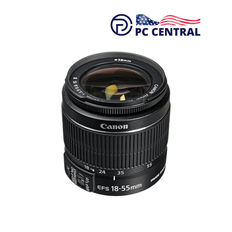 The Canon EF 18-55mm f/3.5-5.6 IS II Zoom Lens is a standard zoom lens designed with Canon's Optical Image Stabilizer technology while retaining the compactness and lightness of previous models. Its stabilization allows sharp hand-held shots at shutter speeds up to four stops slower than otherwise possible. It consists of 11 elements in 9 groups and uses an spherical lens element to correct aberration for excellent image quality throughout the zoom range and a circular aperture for exquisite rendering of out-of-focus backgrounds. Without a lot of size, weight or cost, this lens expands picture-taking possibilities any time slow shutter speeds are needed.