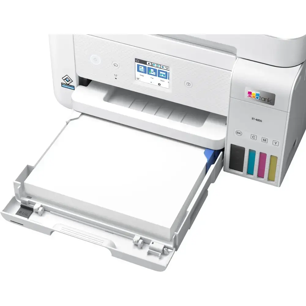 The Epson EcoTank ET-4850 is the perfect solution for businesses that need a fast, affordable, and easy-to-use printer with premium productivity features. Say goodbye to expensive, small ink cartridges and hello to cartridge-free printing with high-capacity, refillable ink tanks. This innovative design helps you save up to 90% on replacement ink (1) and reduces the hassle of running out of ink. The ET-4850 also offers essential office functions such as fax, high-resolution scanning, auto 2-sided printing, and a 2.4" color touchscreen, making it a versatile and efficient choice for your office.