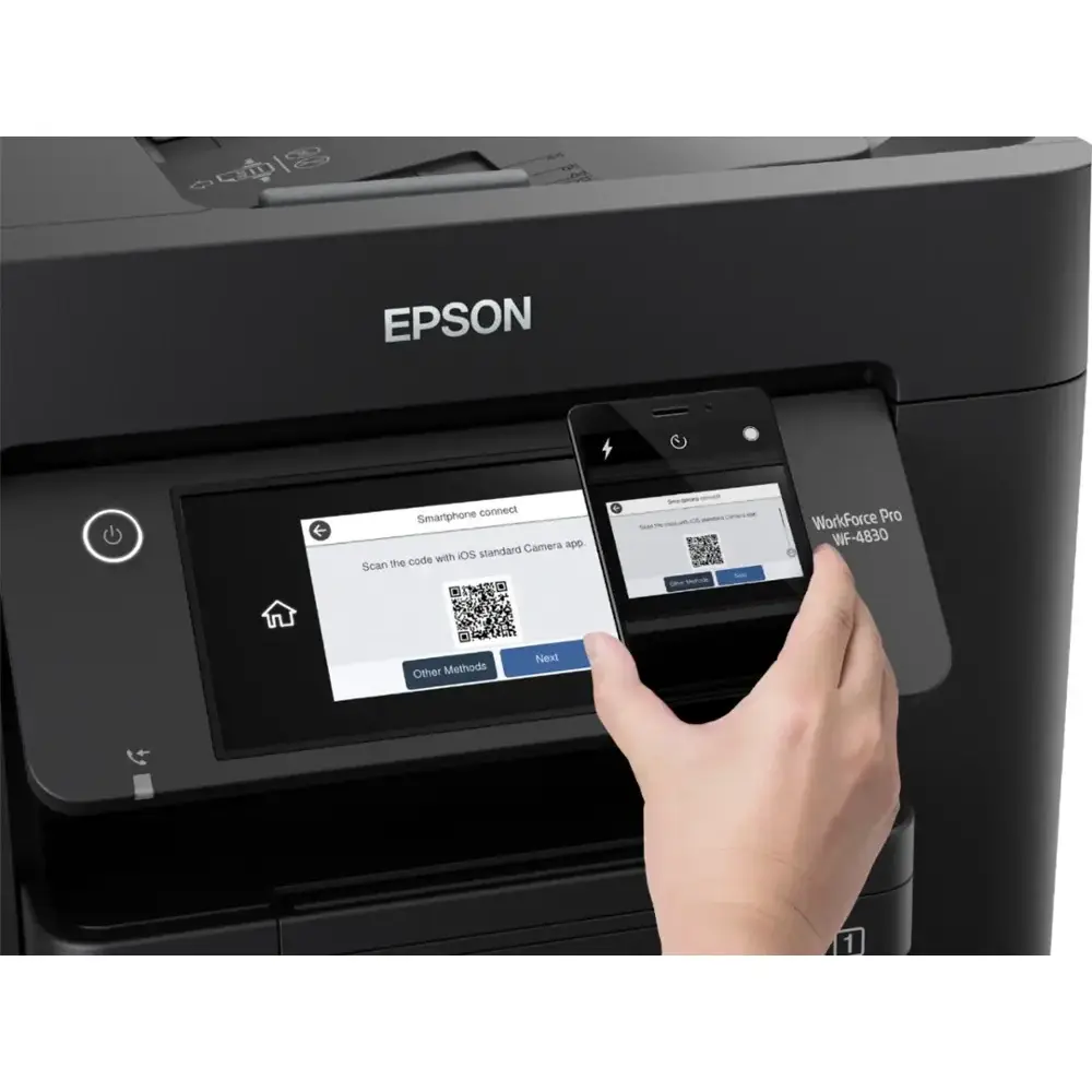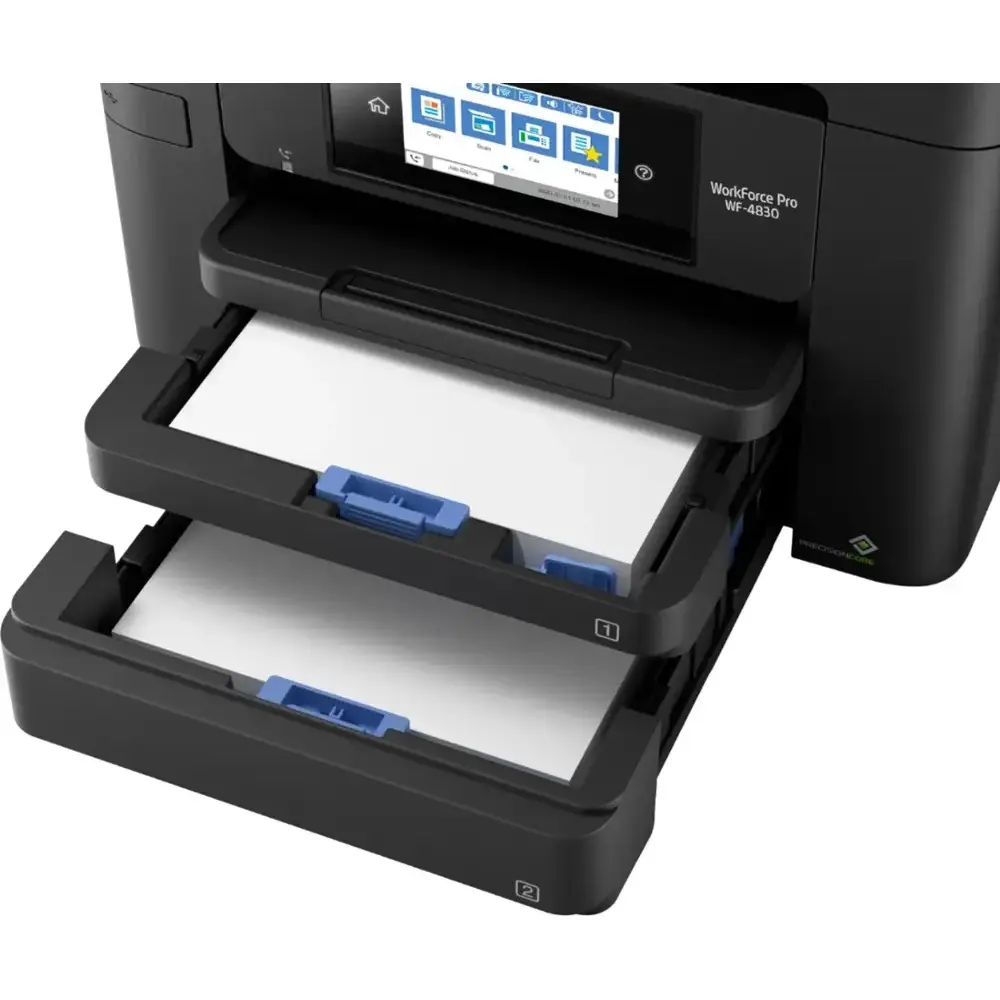 The Epson WorkForce Pro WF-4830 Wireless All-in-One Printer offers versatile All-in-One functionality, allowing you to print, scan, copy, and fax with ease. Its wireless connectivity enables seamless printing from smartphones, tablets, and computers. With fast printing speeds, it helps boost productivity in any office environment. The automatic two-sided printing feature helps save paper, while the high-capacity ink cartridges reduce the frequency of replacements. Its sleek Black design ensures it fits well in any professional setting