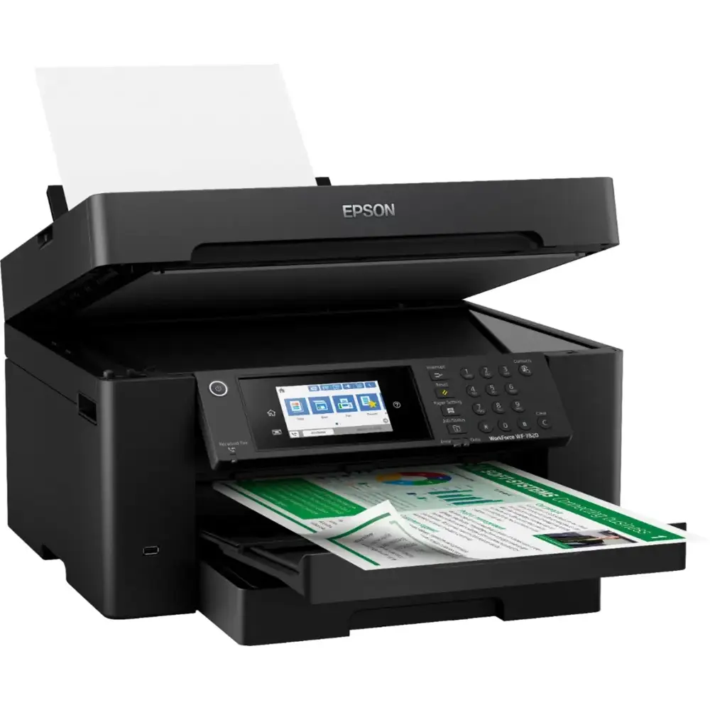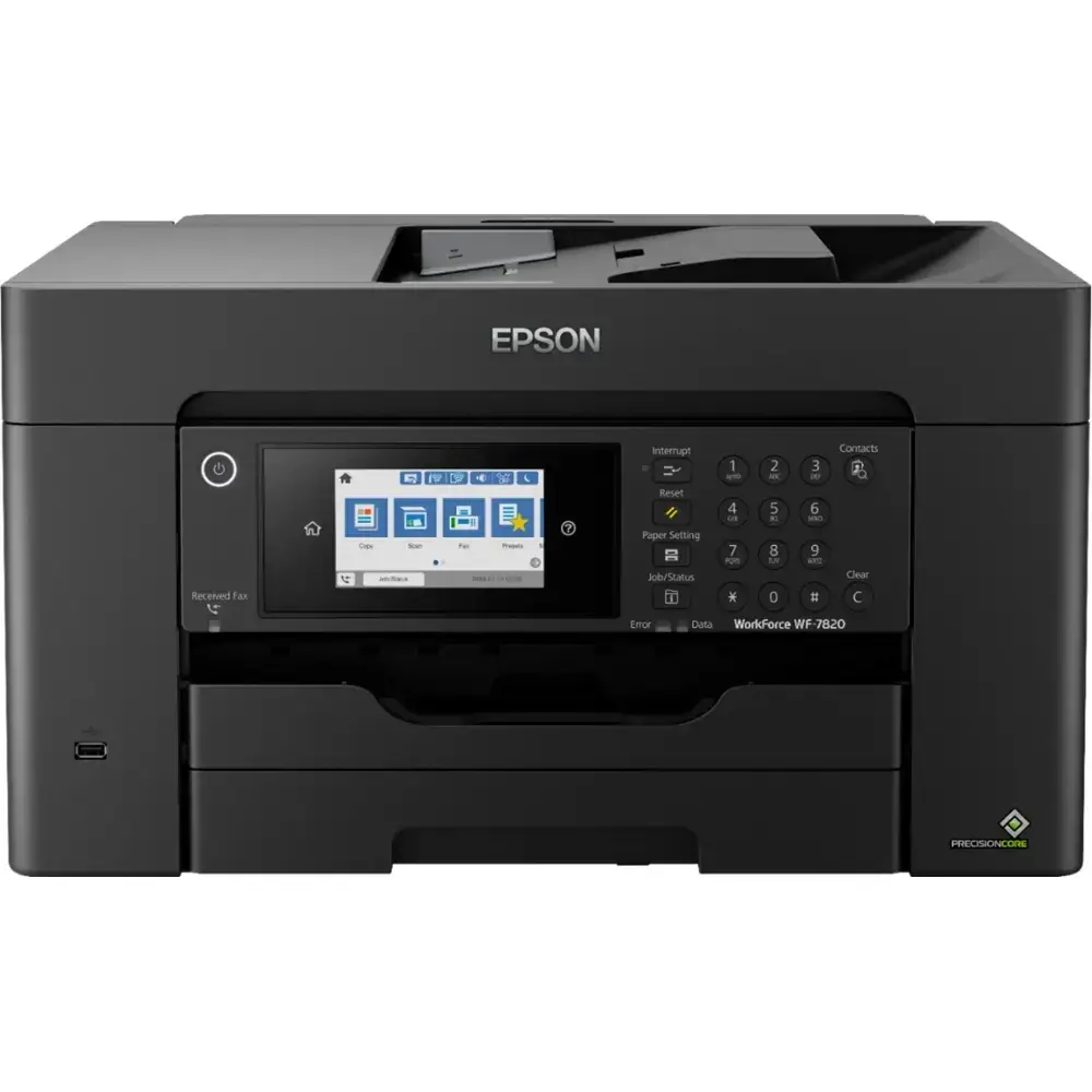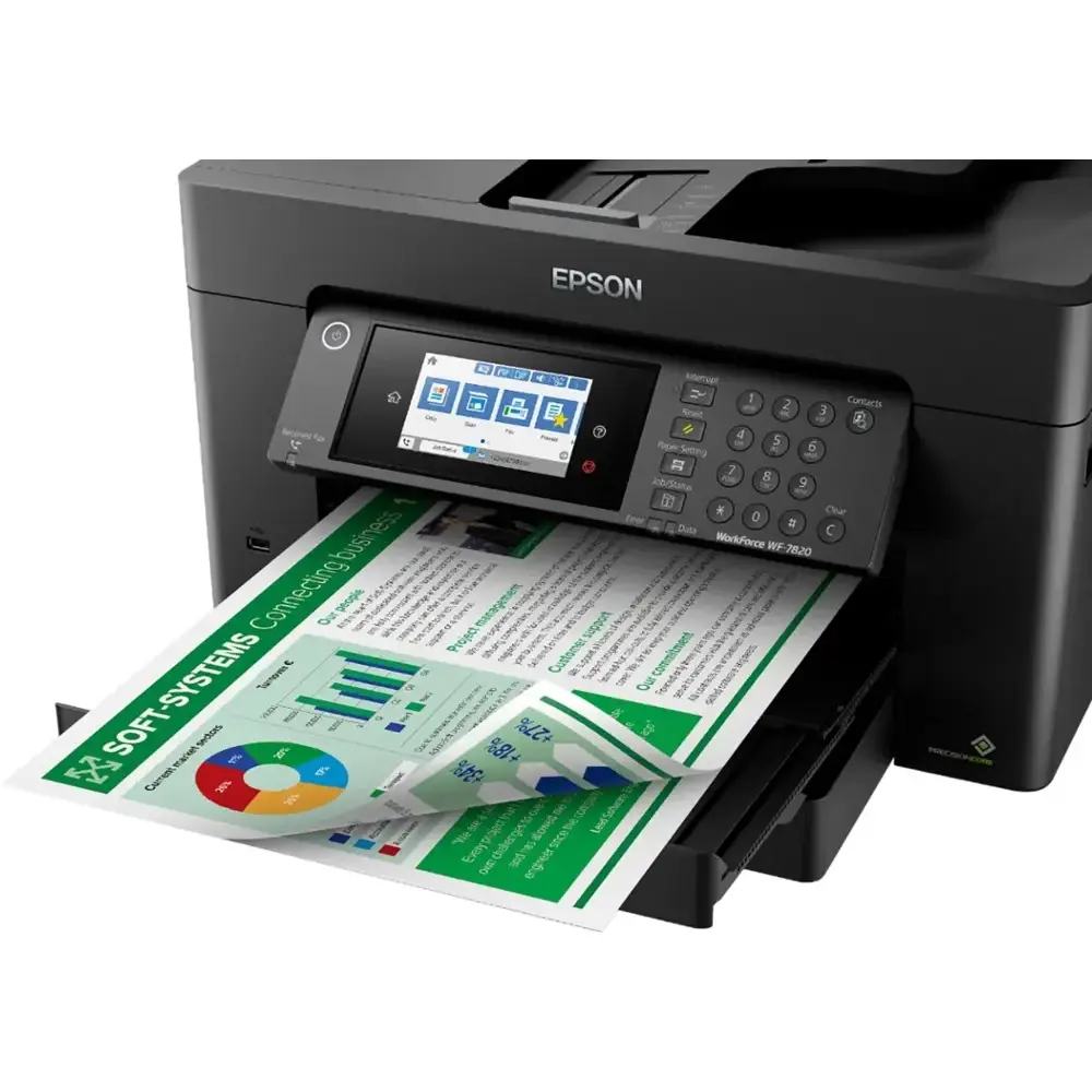 The high-performance printer supports wide-format printing up to 13" x 19", making it ideal for large office tasks. It offers an efficient duplex solution with auto 2-sided printing, copying, scanning, and faxing, along with a 50-sheet automatic document feeder (ADF). The printer delivers fast output, producing 25 black and 12 color ISO pages per minute, with a quick first-page-out time. Equipped with PrecisionCore Heat-Free Technology and DURABrite Ultra inks, it ensures high-quality prints. Convenient features include a 250-sheet paper capacity, a 4.3" color touchscreen for easy navigation, and simple wireless setup. Designed for high-volume printing, this versatile and reliable printer offers a user-friendly interface and fast connectivity options for seamless performance.