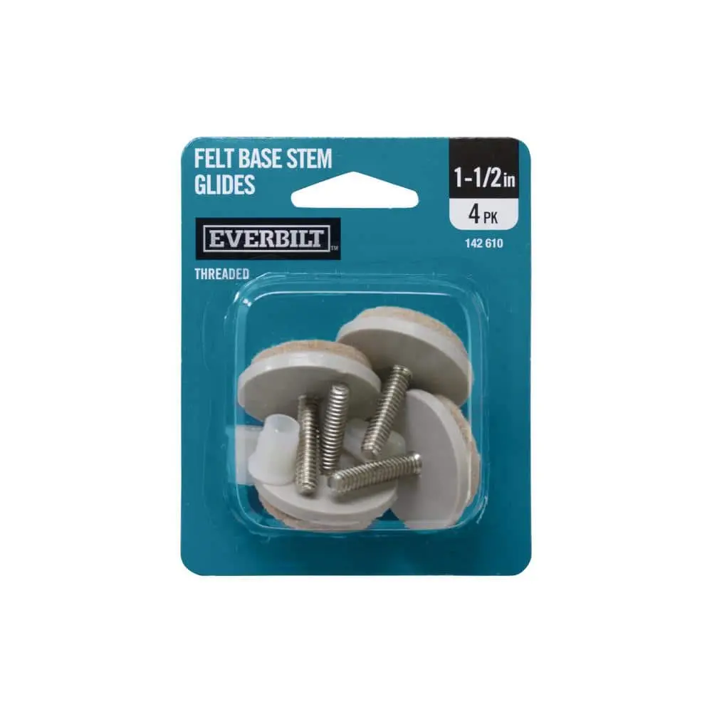 The 1-1/2 in. Felt Guard Plus Round Felt Threaded Stem Glides (4 per pack) are ideal for displays, office equipment, and household furniture with threaded sockets. These glides feature felt bottoms that minimize friction and noise while preventing scratches on hardwood and laminate floors. They are easy to attach using 1/4 in. x 20 x 1 in. threaded stems and provide excellent floor protection with the added benefit of adjustable height.
