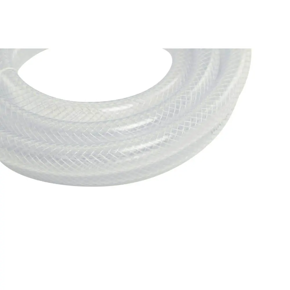 This braided vinyl tubing is constructed from polyester-reinforced polyvinyl chloride, offering strength that can withstand up to four times the working pressure of standard single-wall PVC. Its smooth, dense inner bore enhances flow rate and minimizes sediment buildup. With exceptional resistance to acids, alkalis, and many solvents, it effectively handles a wide range of chemicals, gases, and liquids. Designed for superior performance in demanding conditions, it is ideal for hydraulic, pneumatic, and vacuum lines.