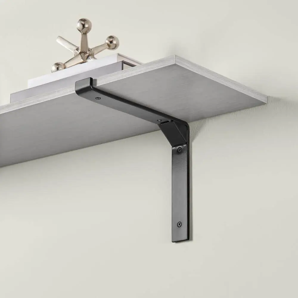 The Everbilt 10 in. Black Deco L Steel Bracket offers a 10 in. length, providing strong support for shelving and decorative applications. The black deco finish adds a sleek and modern touch to any decor, making it an ideal choice for a variety of spaces. Made from durable steel construction, this bracket ensures long-lasting support. Its versatile design makes it perfect for shelves, countertops, or other decorative uses. Installation is made easy with pre-drilled holes, allowing for quick and secure mounting