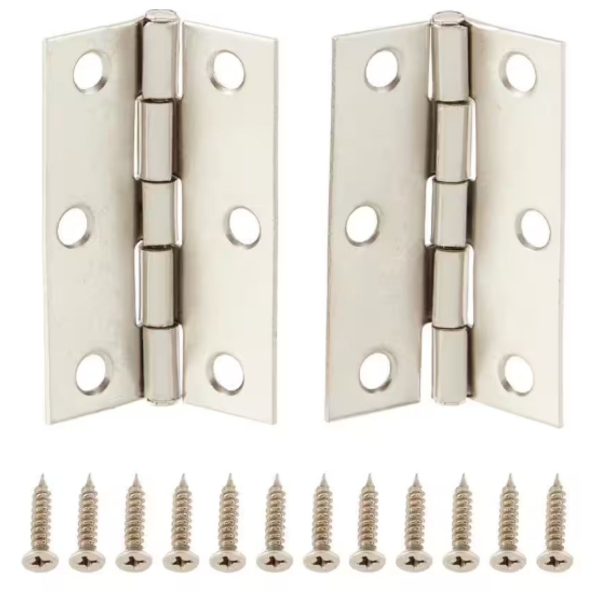 The Everbilt 2-1/2 in. Non-Removable Pin Narrow Utility Hinges (2-Pack) are perfect for ensuring your items stay securely attached. Their 5-knuckle full mortise design is engineered to hold parts firmly in place, providing stability and reliability. With the non-removable pin feature, you can rest assured that your hinges offer added security, preventing unauthorized removal. Crafted from steel, these hinges are built for durability, making them ideal for a variety of applications where strength and longevity are essential. Whether you're working on cabinets, doors, or other projects, these utility hinges are designed to meet your needs with sturdy, dependable performance.