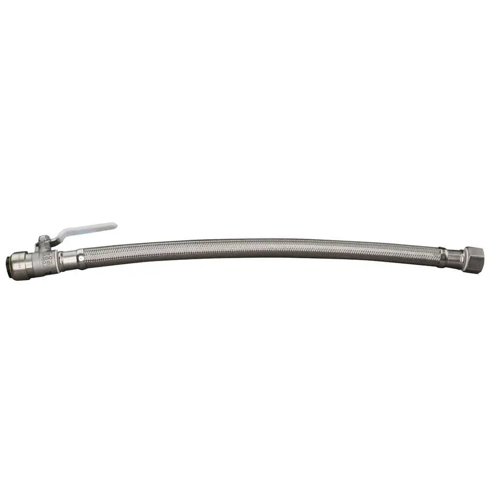 The Everbilt 3/4 in. PTC x 3/4 in. FIP x 18 in. Braided Stainless Steel Water Heater Connector with Ball Valve offers a quick and easy solution for connecting hot and cold water lines to water heaters. After applying pipe thread tape to the MNPT nipples, simply thread the FNPT end onto the tank and tighten. Then, push the Push-To-Connect end onto Copper, PEX, or CPVC pipes to complete the connection. The integrated ball valve provides a convenient quarter-turn shut-off with a single handle for flow control.